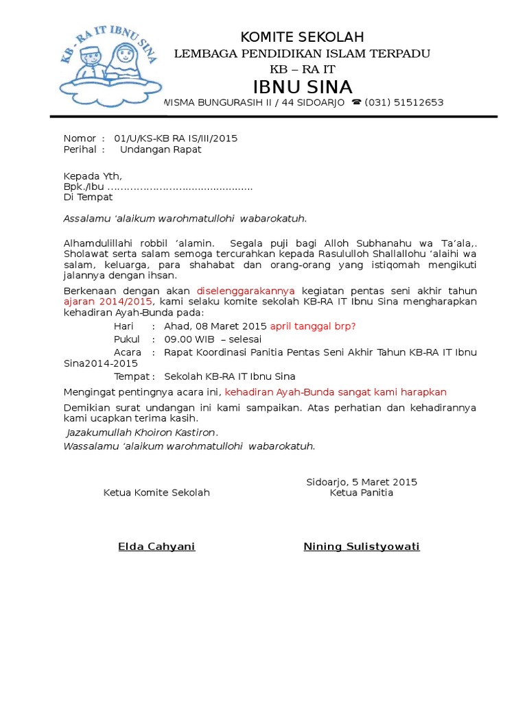 Contoh Surat Undangan Pentas Seni Untuk Wali Murid - Kumpulan Surat Penting