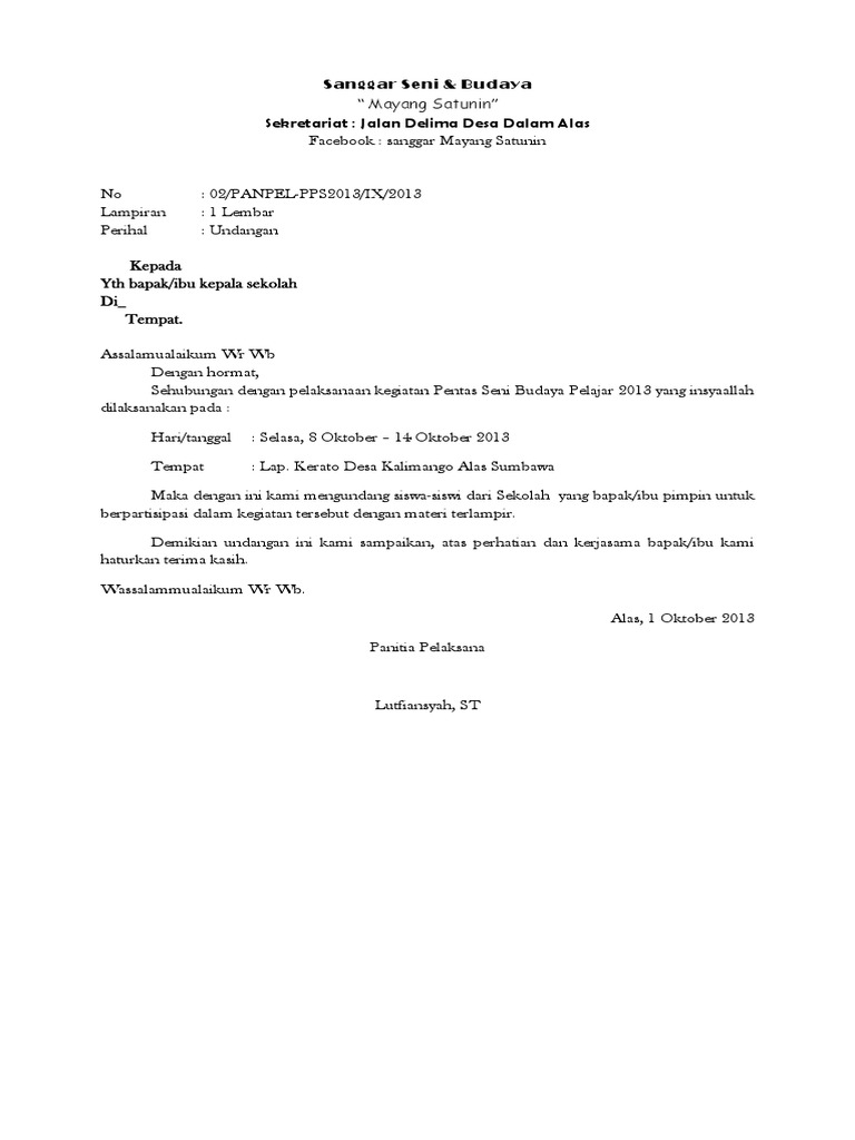 Contoh Surat Undangan Resmi Pentas Seni - Cute766