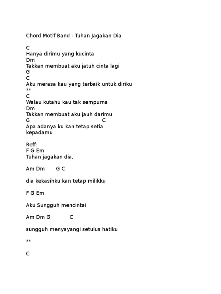 Chord Tuhan Jagakan Dia (Cover Motif Band) tuhan jagakan dia dia kekasihku kan tetap milikku aku sungguh tuhan jagakan dia dia kekasihk… | Tuhan, Kunci gitar, Gitar