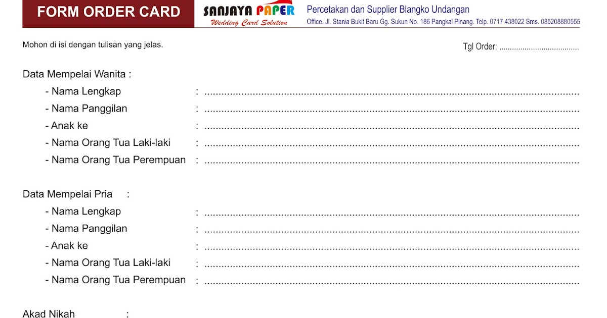 Form Order | Cetak Undangan Pernikahan Murah di Pangkalpinang