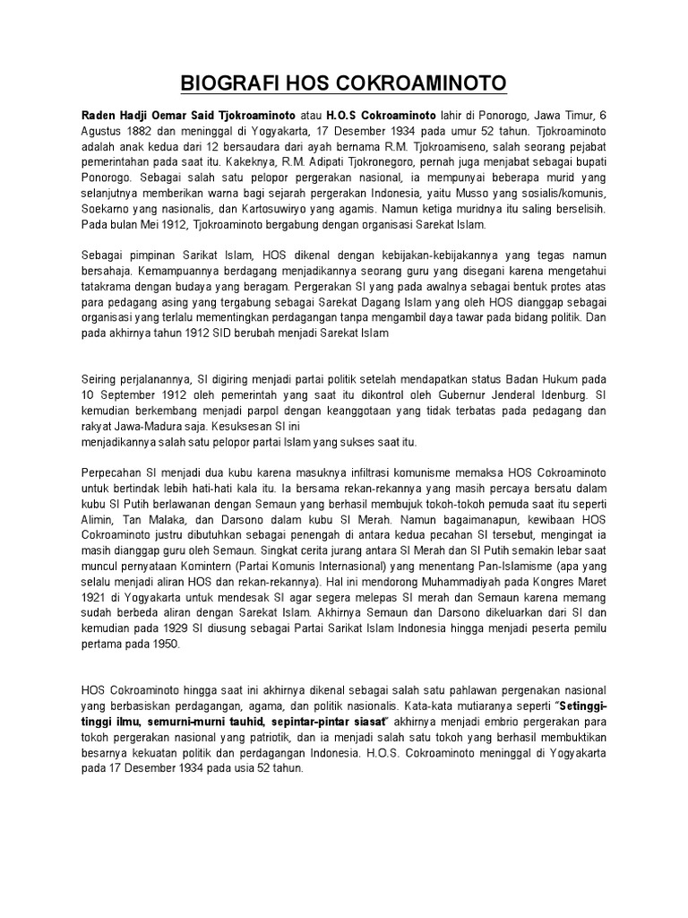 DOC) Biografi HOS Cokroaminoto | fans pay - Academia.edu