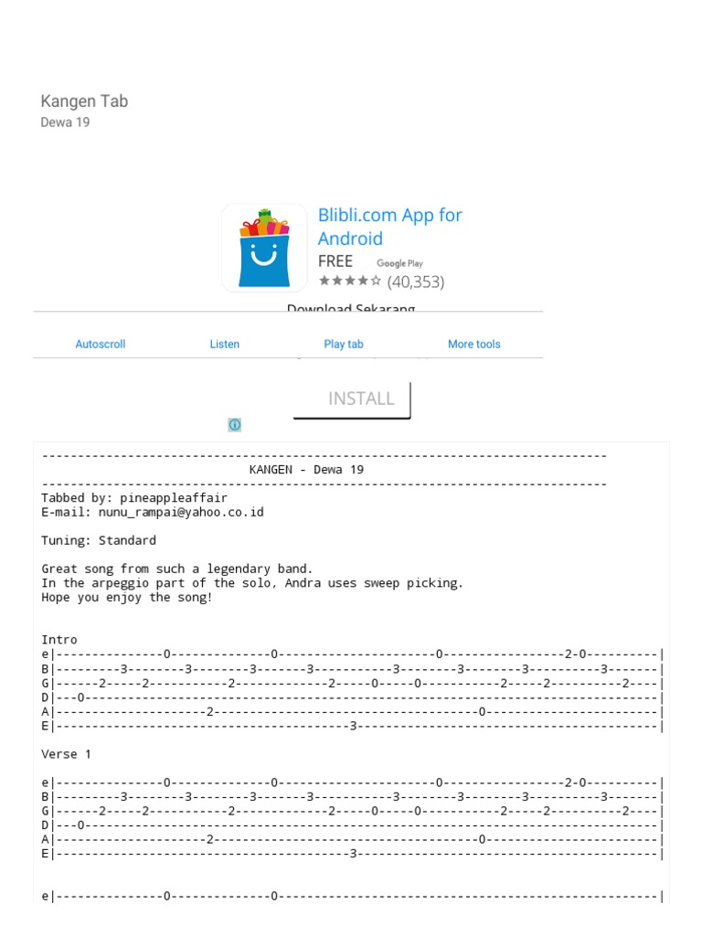 KANGEN TAB by Dewa 19 @ Ultimate-Guitar.com | Song Structure | String Instruments