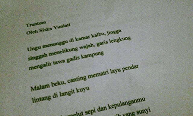 Tulis Puisi “Truntum”, Siska Yuniati Juara 1 Lomba Cipta Pusi Festival Sastra UGM 2016 - MTs Negeri 3 Bantul
