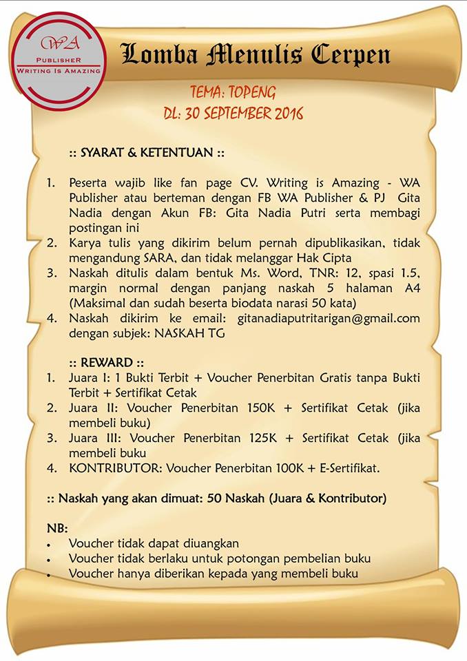 Ketentuan Lomba Menulis Cerpen 2016 | Mushlihatun Syarifah