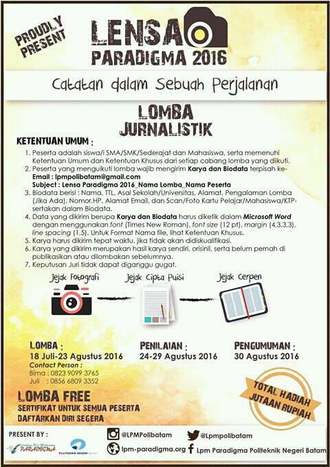 Lensa Paradigma 2016: Ayo Ikutan Lomba Cerpen, Cipta Puisi dan Fotografi! ~ LPM Paradigma