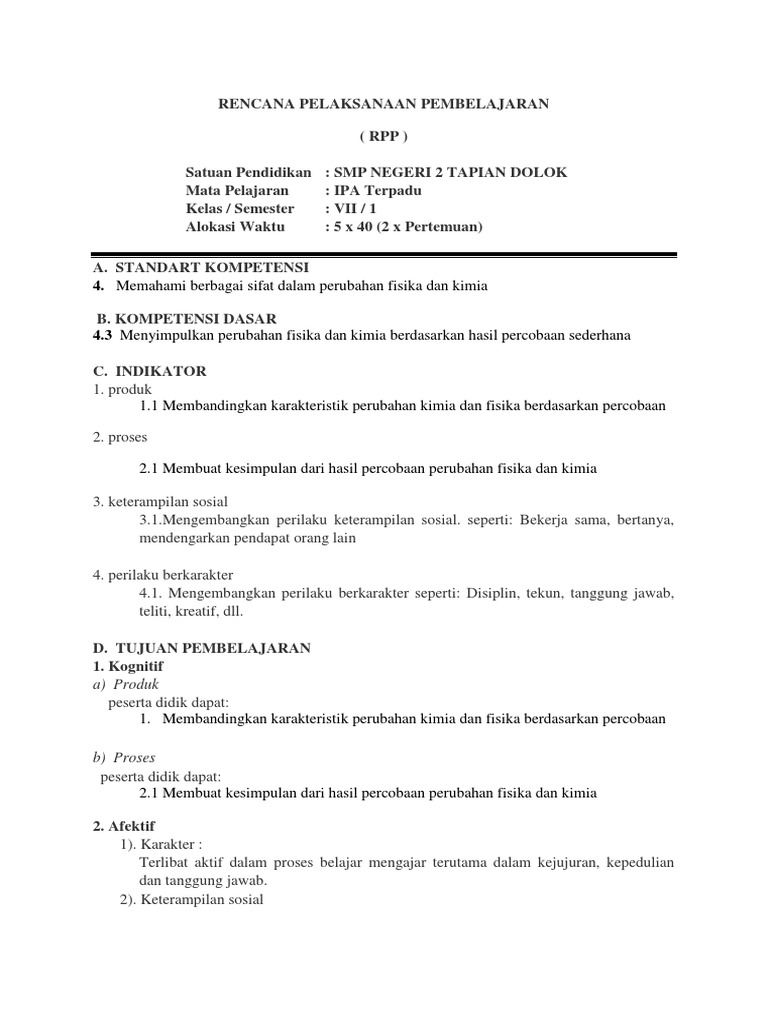 DOC) RPP PERUBAHAN MATERI | Nytha Bria - Academia.edu