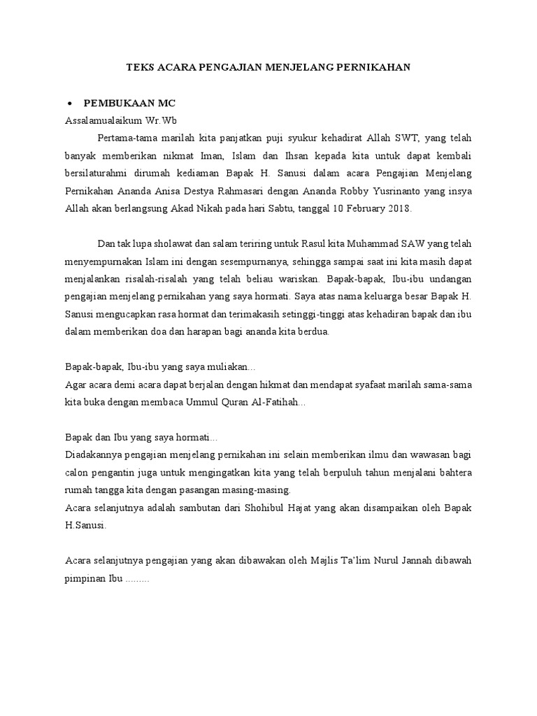 Teks Acara Pengajian Menjelang Pernikahan