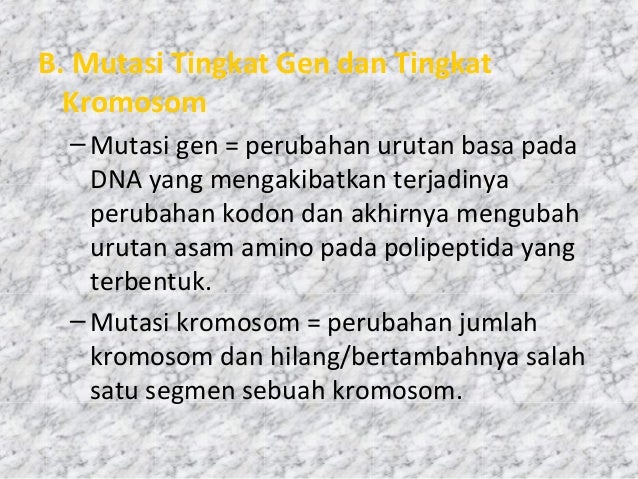 Mutasi yang mengalami perubahan dimana yang berubah itu materi yang ada di dalam Kromosom ( Materi didalam kromosom itu tidak lain adalah Gen ) - PDF Free Download