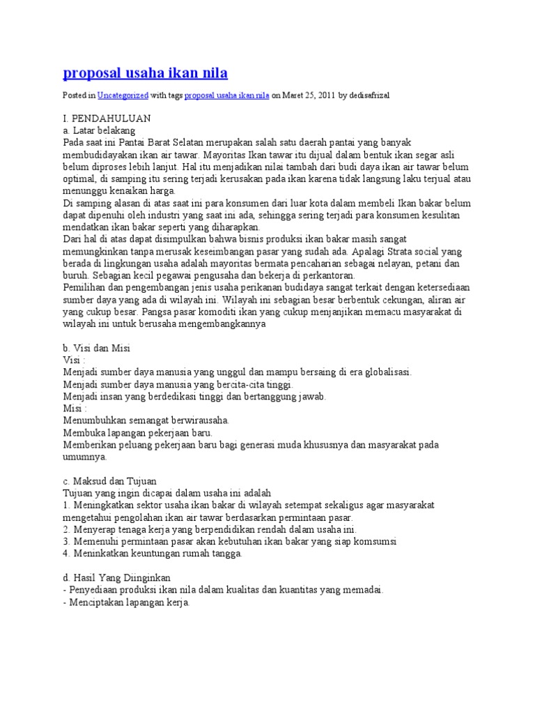 Contoh Proposal Usaha Pembudidayaan dan Pengolahan Lele | PortalInvestasi.com