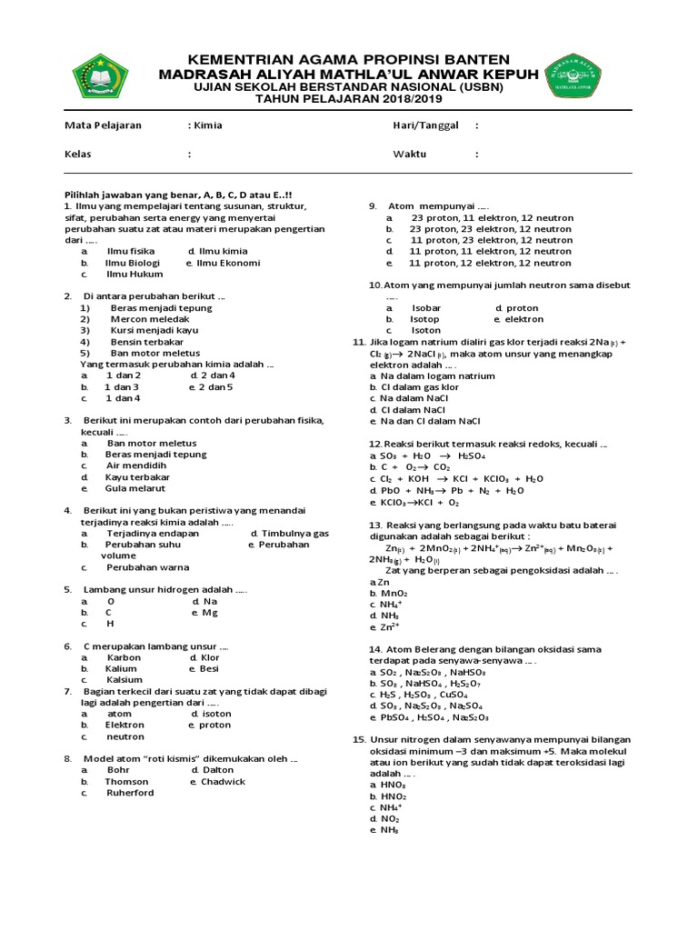 DOC) Soal Pilihan Ganda Kimia Kelas X Semester 1 & 2 | Irfan Kamal Firdaus - Academia.edu