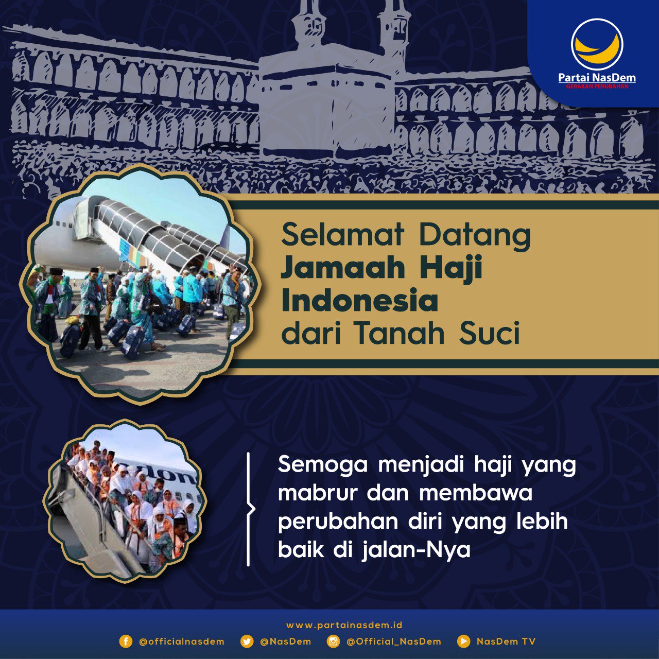 Partai NasDem on Twitter: “Selamat datang para Jamaah Haji Indonesia dari Tanah Suci. Semoga ibadah haji yg dijalankan di Tanah Suci bisa membawa perubahan diri yg lebih baik dan semoga menjadi haji
