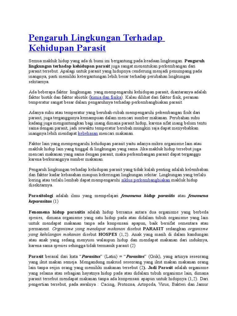 Pengaruh Lingkungan Terhadap Kehidupan Parasit