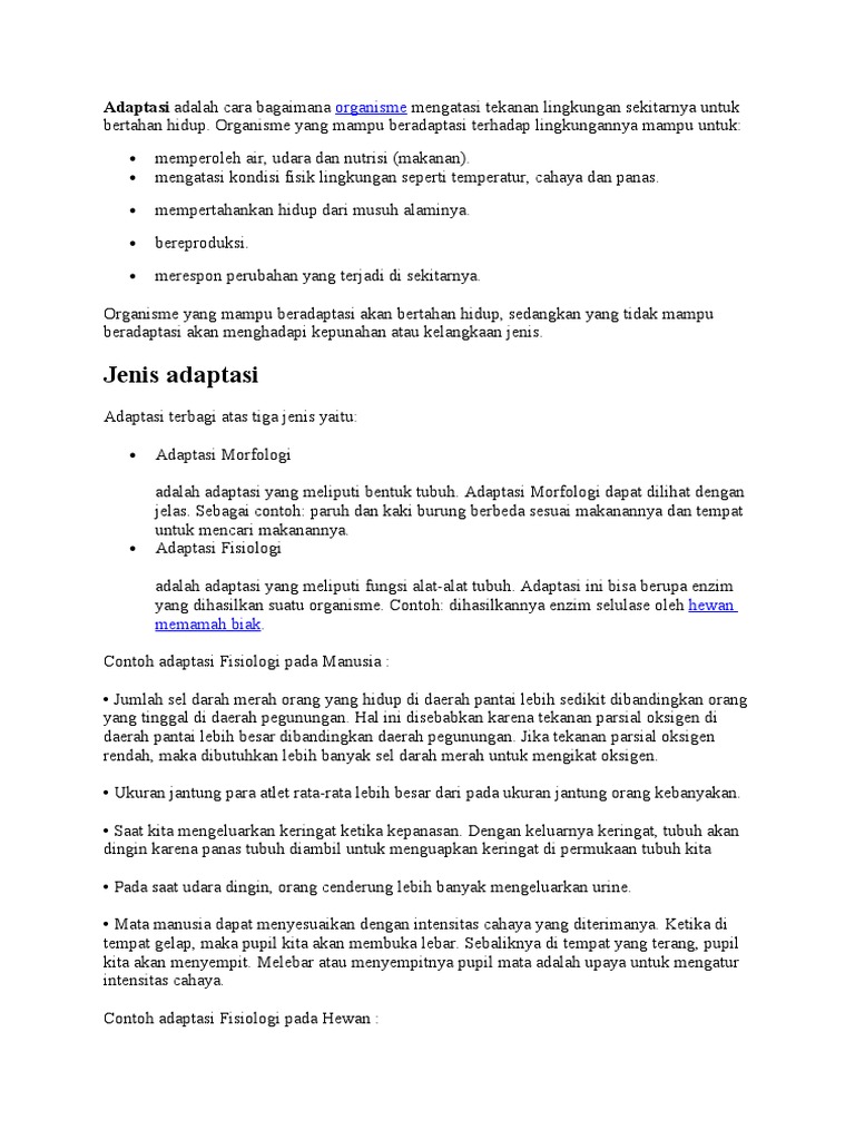 Jelaskan tentang proses adaptasi pada makhluk hidup terhadap …