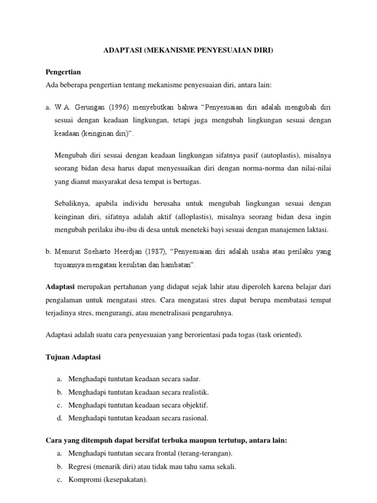 Adaptasi (Mekanisme Penyesuaian Diri)