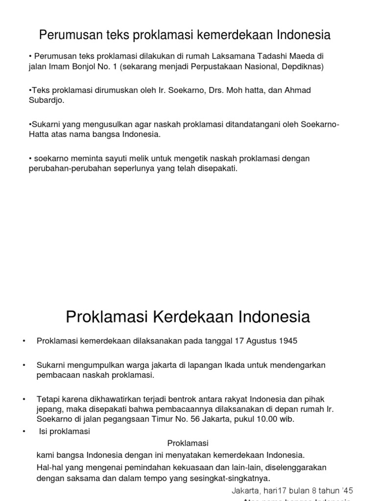 ISI TEKS PROKLAMASI : Sejarah, Makna, Perumusan, Penyusun, Dll