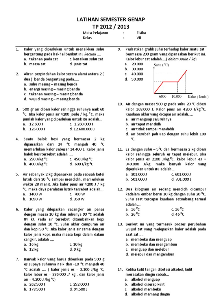 Web viewKalor lebur Perubahan wujud zat yang melepaskan kalor terjadi pada waktu … a. Menguap - [DOC Document]