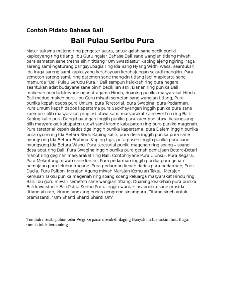 Contoh Contoh Pidato Bahasa Bali | informasi lowongan pekerjaan bulan ini