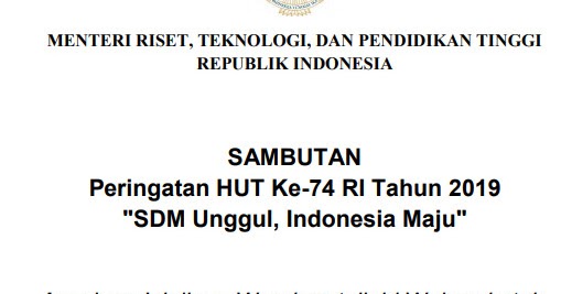 Sambutan Menristekdikti pada Upacara HUT RI ke-74 2019 | Informasi …
