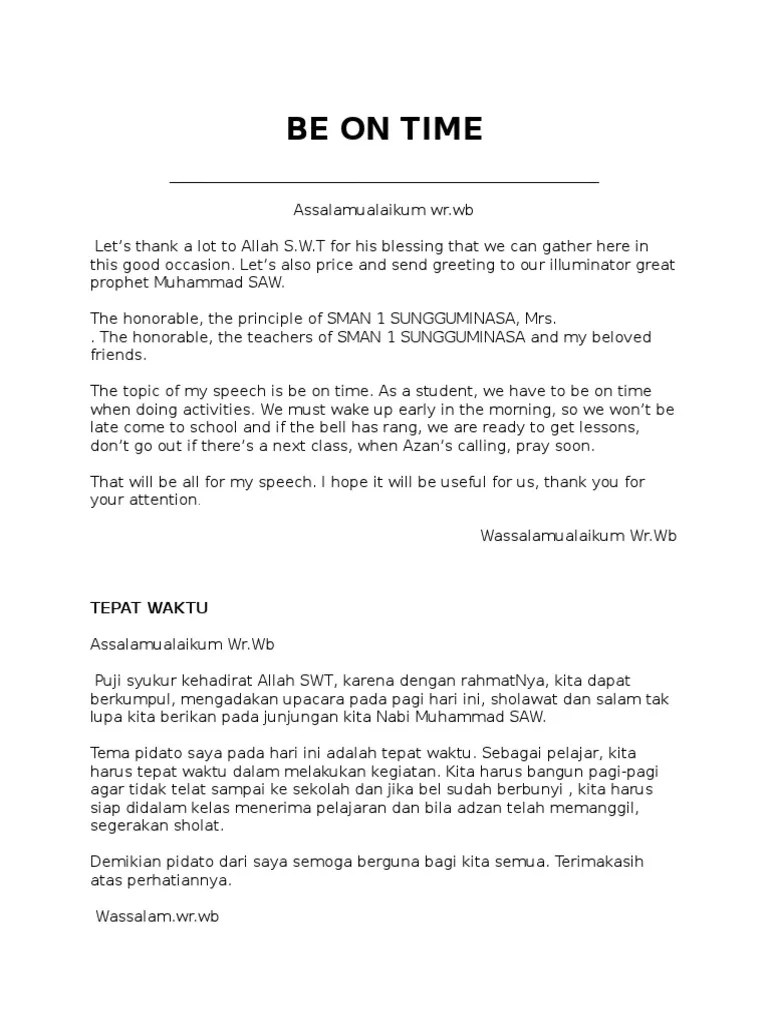 DOC) Pidato Bahasa Inggris Tentang Korupsi Waktu | Ira Manulchan …