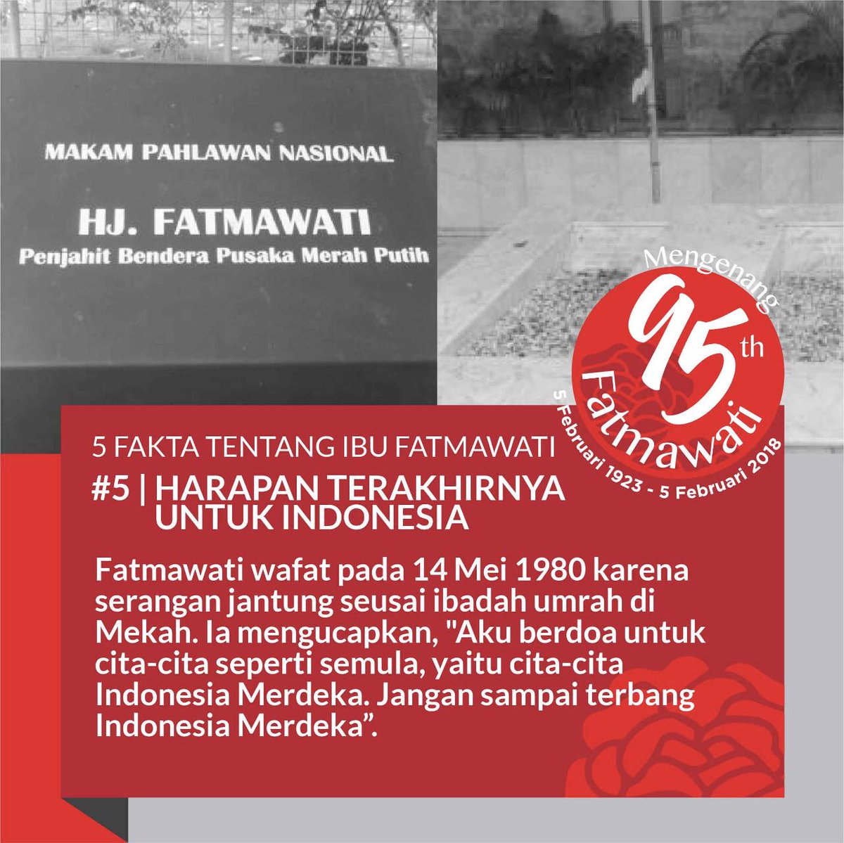 Muhadir on Twitter: “Mengenang Hj. Fatmawati sang Penjahit Bendera Merah Putih, tugas kita sebagai generasi penerus bangsa adalah menjaga merah putih dari pihak asing yang menggangu kemerdekaann kita #95tahunIbuFatmawati… https://t.co/CYvvold4FO”