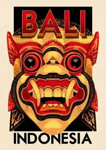 See visit Bali travel tourism advertising mask poster Garuda Indonesia airways / HipStamp