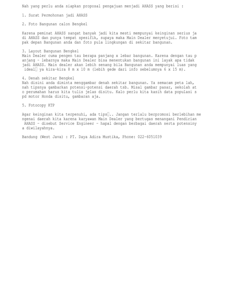 Proposal Pengajuan Menjadi AHASS