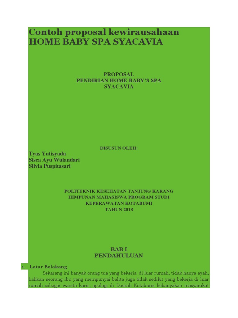 Contoh proposal kewirausahaan Home Baby Spa