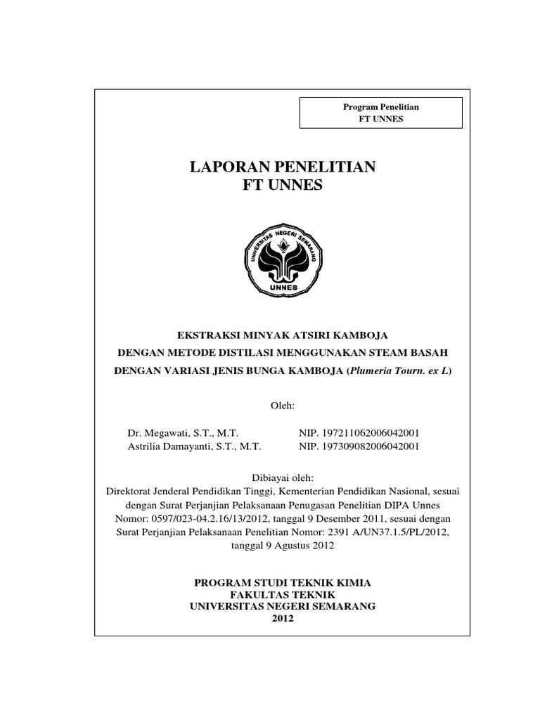 PETUNJUK PENULISAN LAPORAN PENELITIAN Fakultas Teknik UNTAG Semarang