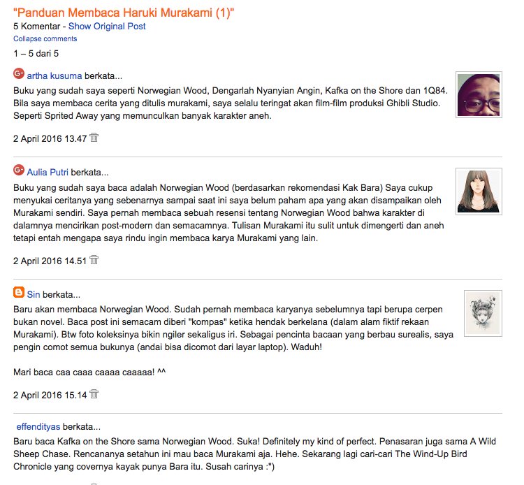 Bernard Batubara on Twitter: “4 komentar baru di tulisan “panduan membaca haruki murakami”. https://t.co/Kki9RsDqYa sudah dibalas. https://t.co/sv6SVaXoai”