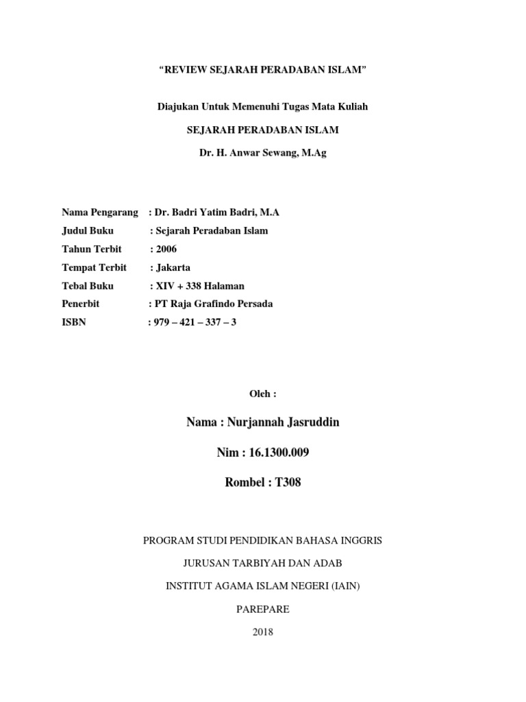 Sejarah peradaban islam uas resensi buku - [DOCX Document]