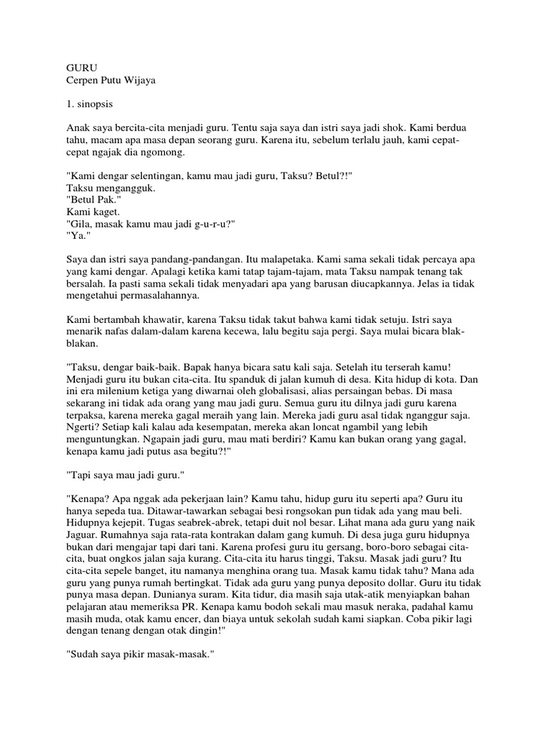Analisis Cerpen Guru Karya Putu Wijaya - [PDF Document]
