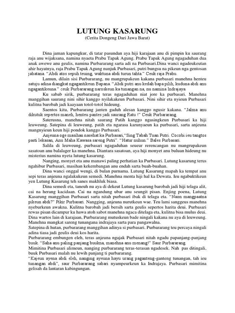 Lutung Kasarung. Kustri Sumiyardana. Cerita Rakyat dari Jawa Tengah. Kementerian Pendidikan dan Kebudayaan Badan Pengembangan dan Pembinaan Bahasa - PDF Free Download