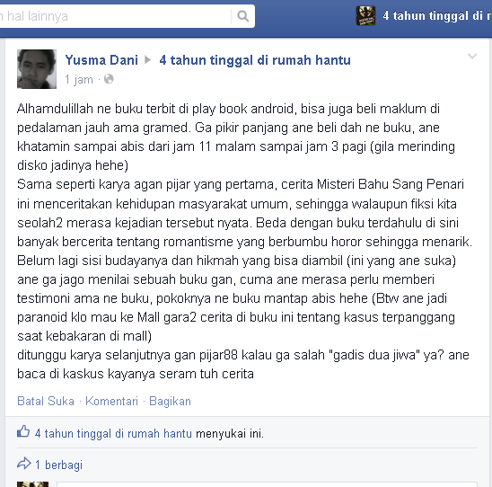 Novel 4 Tahun Tinggal di Rumah Hantu by pijar88, Buku & Alat Tulis, Buku di Carousell