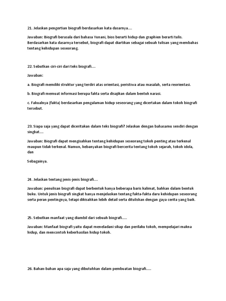sebutkan ciri-ciri teks biografi