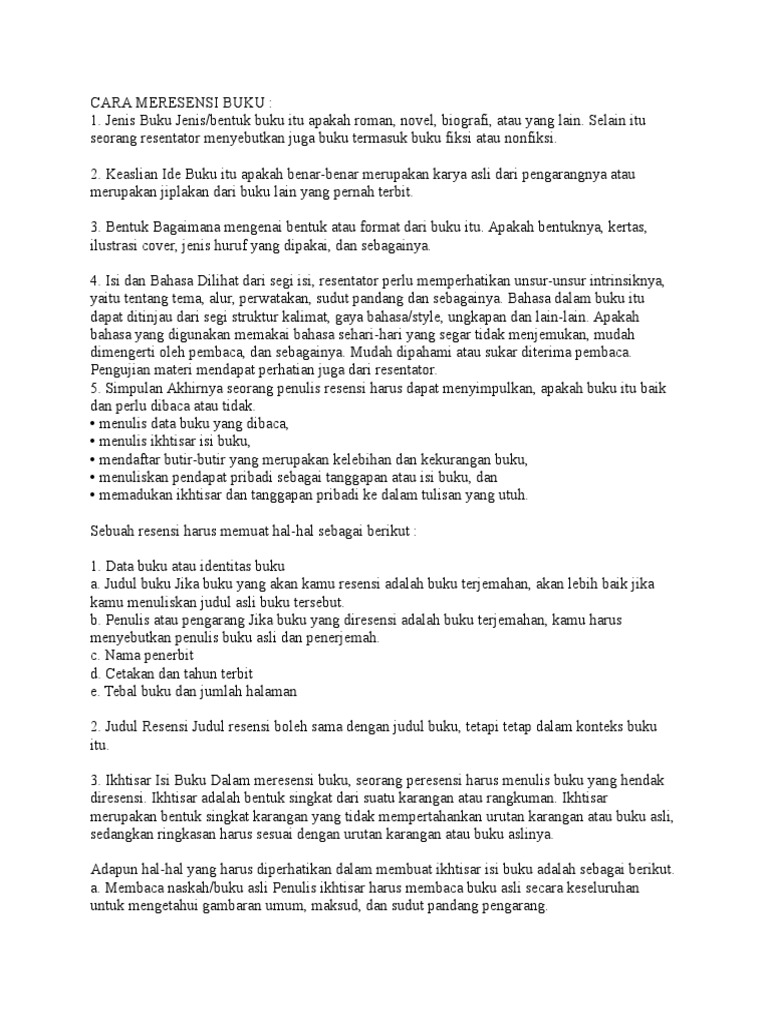 DOC) Cara Membuat Resensi Buku Yang Baik dan Benar | Nurhamsa Musa - Academia.edu