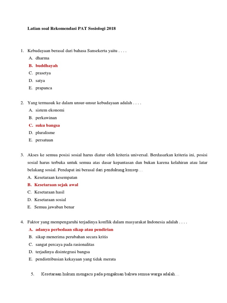 Kumpulan Soal Rekomendasi SOSIOLOGI