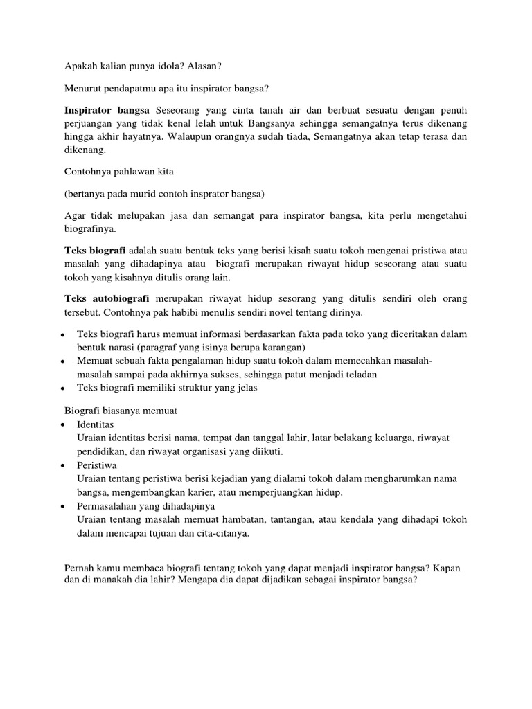 setelah mendengar pembacaan biografi diatas, jawablah pertanyaan-pertanyaan yang telah kamu susun - Brainly.co.id