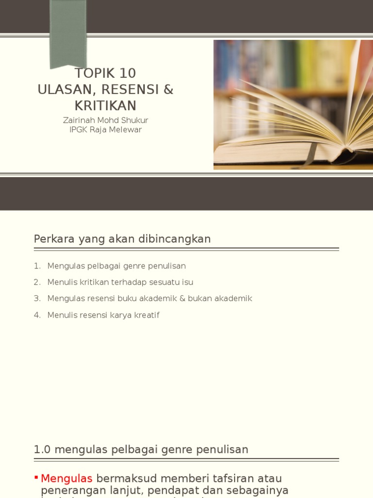 PPT - Topik 10 ulasan , resensi & kritikan PowerPoint Presentation - ID:6505671