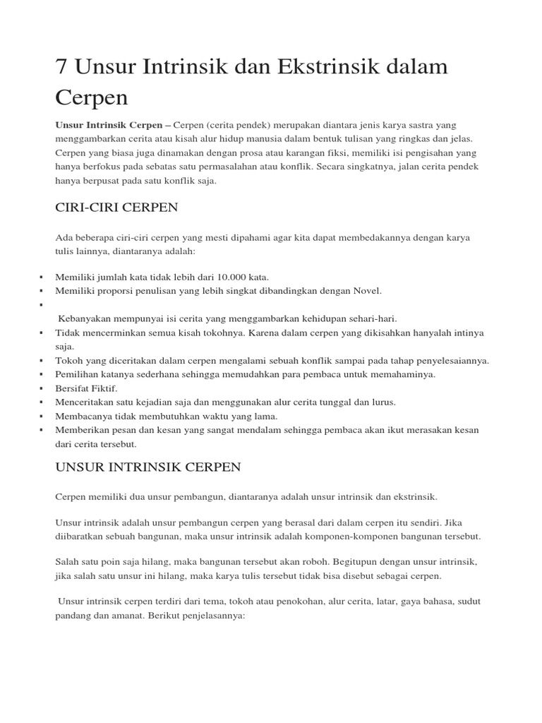 7 Unsur Intrinsik Dan Ekstrinsik Dalam Cerpen | Documents