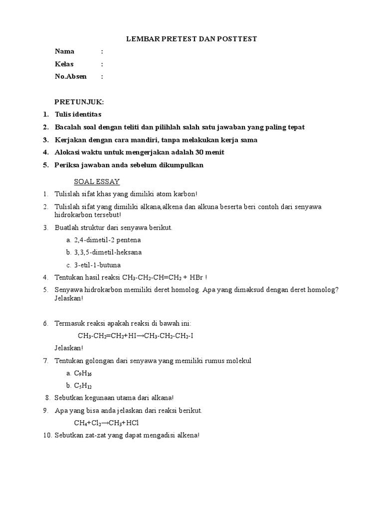 Soal Essay Tentang Alkana, Alkena dan Alkuna + Pembahasan - Your …