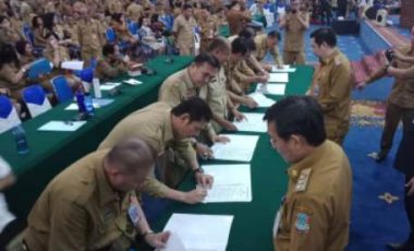 PEJABAT PEMKOT MANADO TANDA TANGAN PAKTA INTEGRITAS DIHADAPAN WALIKOTA DAN WAWALI