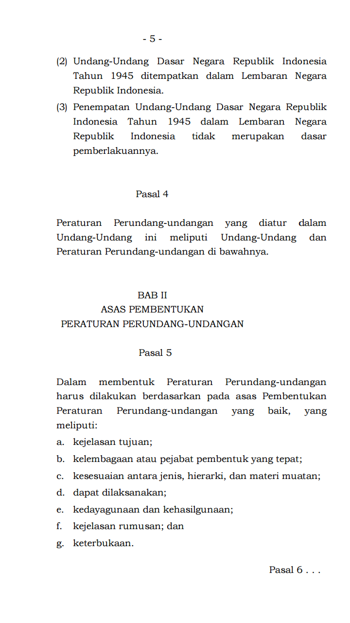 tulis secara singkat asas asas pembentukan peraturan perundang undangan dalam pasal 5 dan 6 dan - Brainly.co.id