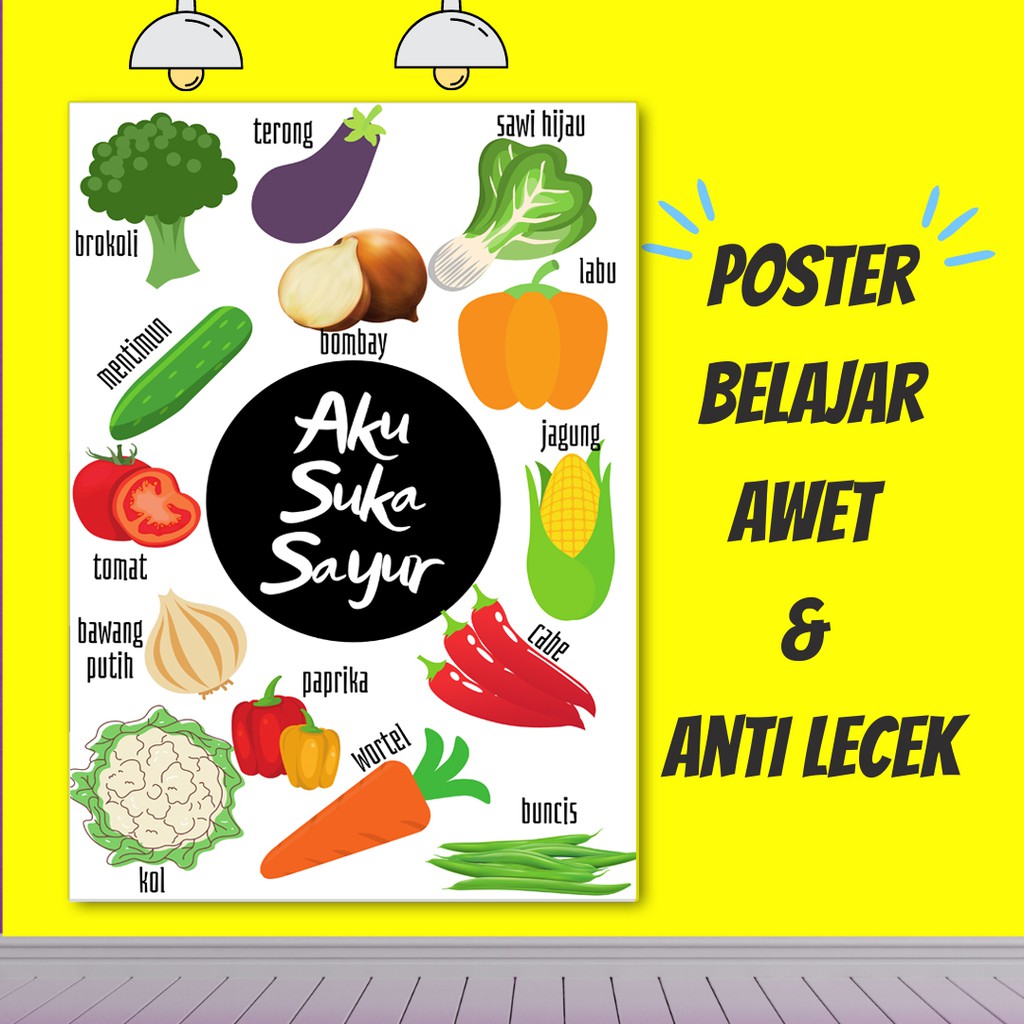 POSTER ANAK - POSTER BELAJAR EDUKASI TK PAUD SERI NAMA SAYURAN (BAHASA INDONESIA) | Shopee Indonesia