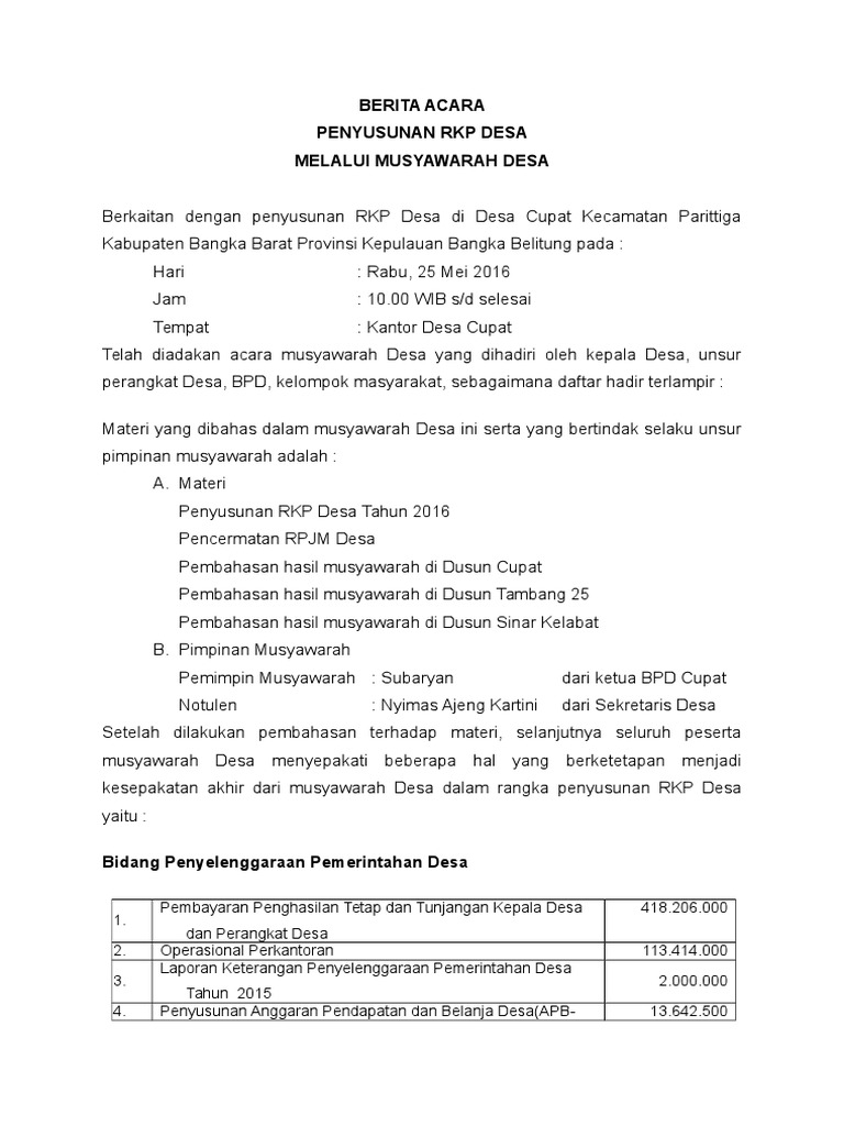Berita Acara Perubahan Rkp Desa