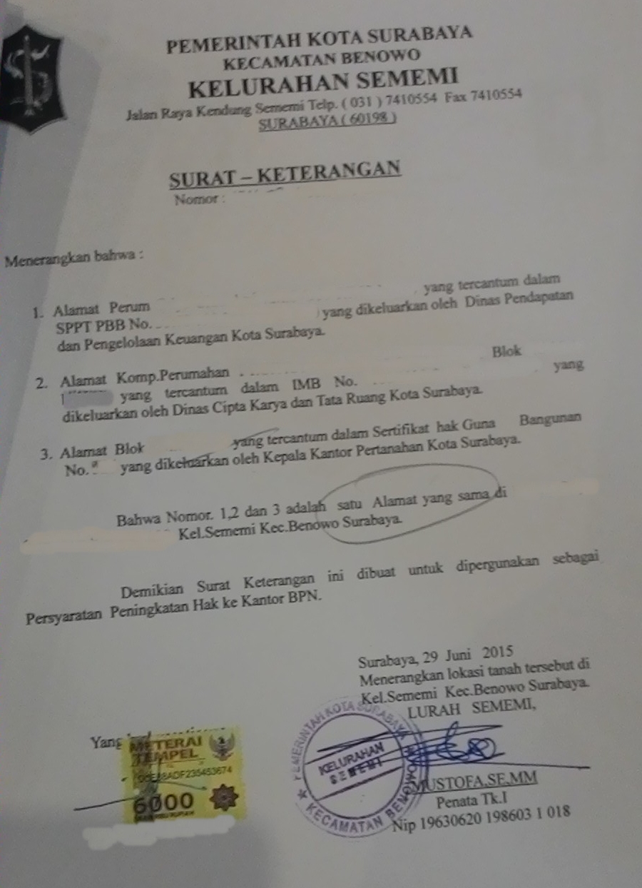 GRIYA CITRA ASRI SURABAYA: Mengurus sertifikat HGB ke SHM