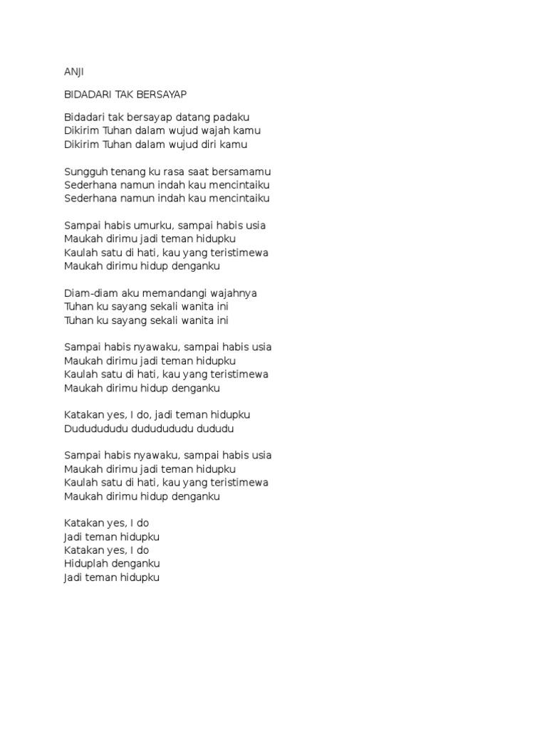 LIRIK LAGU - Bidadari tak bersayap- Anji - Wattpad