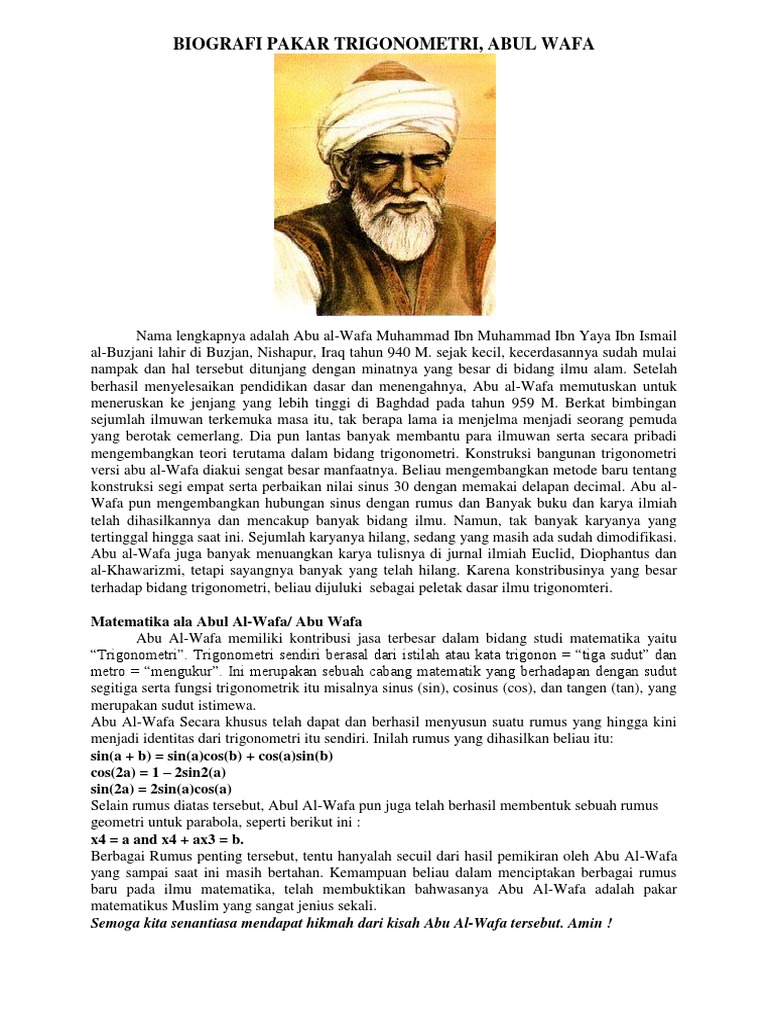 DOC) Biography ; Specialists Trigonometry, Abul Wafa ! | MutiaraPublic Com - Academia.edu