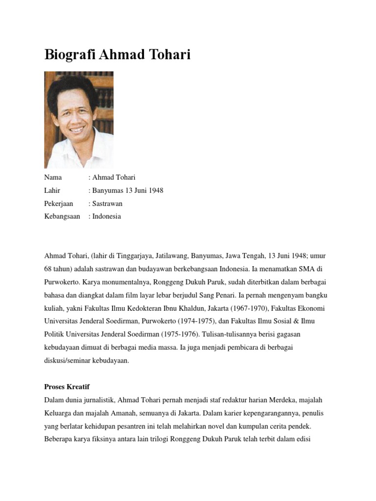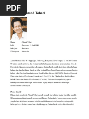 BIOGRAFI AHMAD TOHARI KIPRAH DAN PRESTASI SASTRAWAN BANYUMAS TAHUN - PDF Free Download