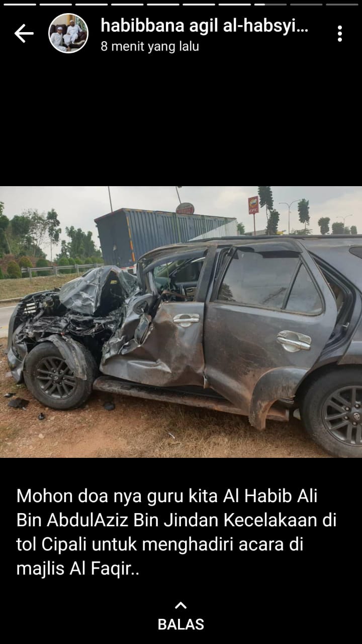 Habib Ali bin Abdul Aziz bin Jindan mengalami kecelakaan di jalan tol Cipali
