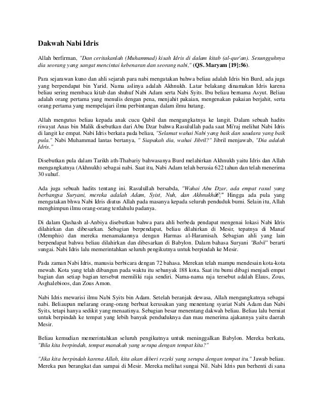 Kisah Nabi Idris as - BIOGRAFI TOKOH TERNAMA